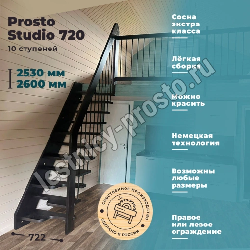 Лестница Prosto Studio 720 гусиный шаг имеет компактную конструкцию на подвесах