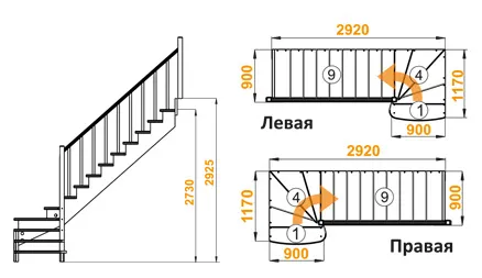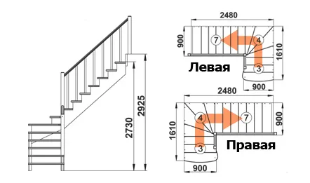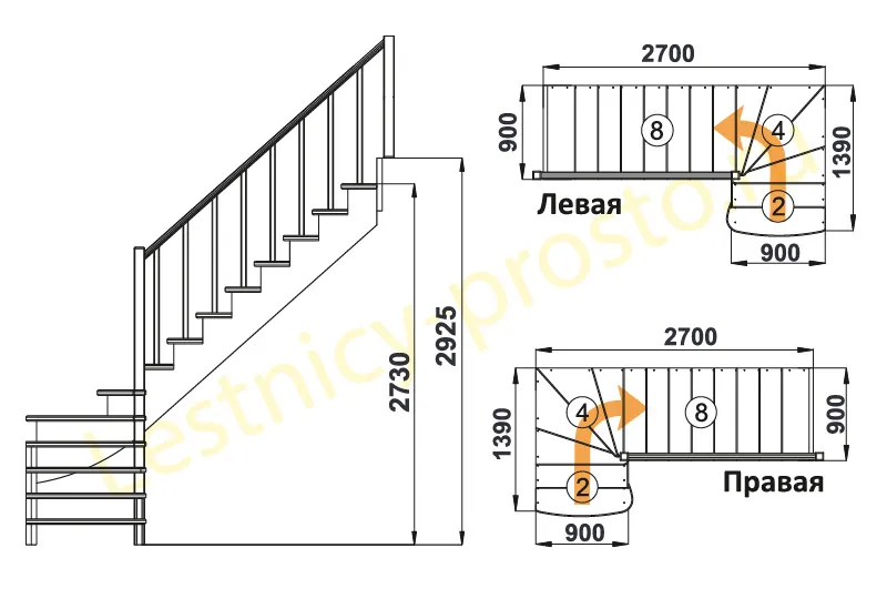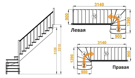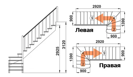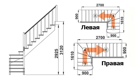 Лестница из сосны К-001М/2 под покраску с подступёнками |