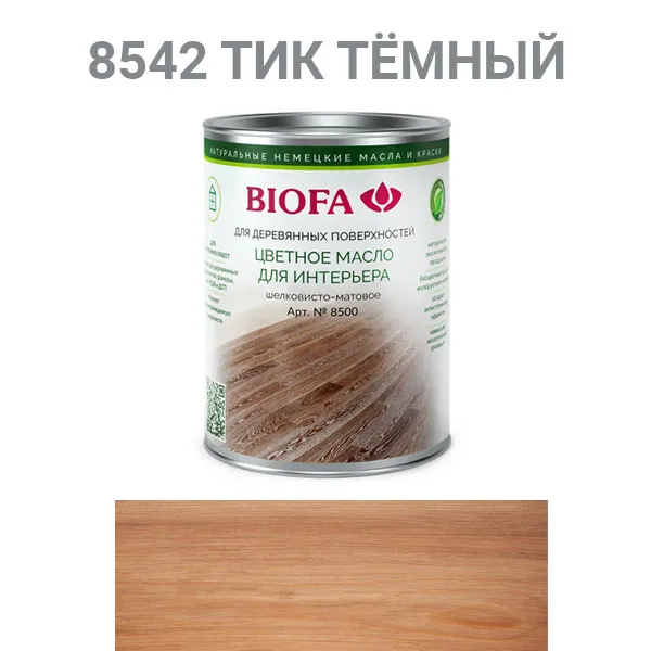 Цветное масло для интерьера 8542 тик тёмный, 1л