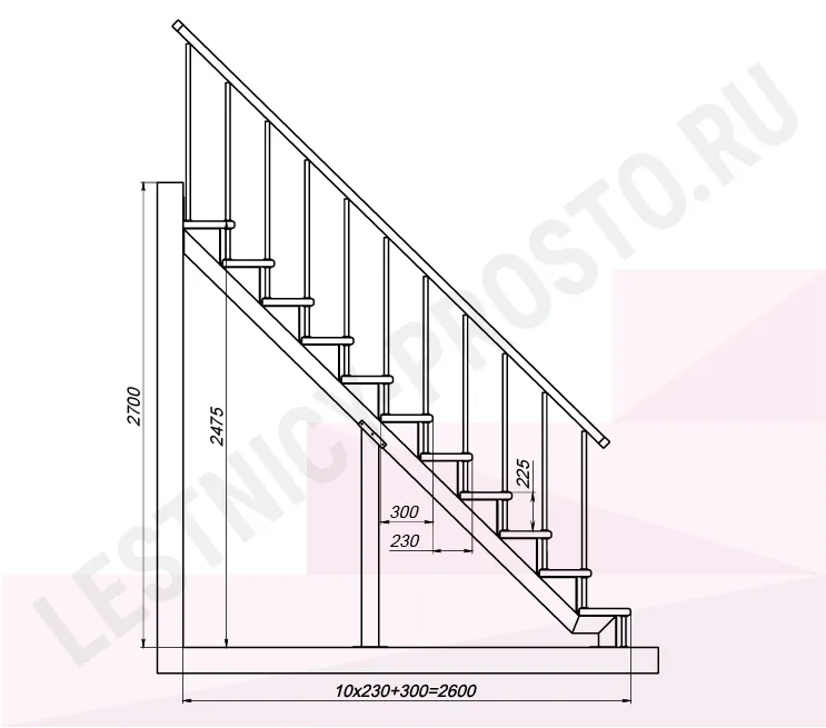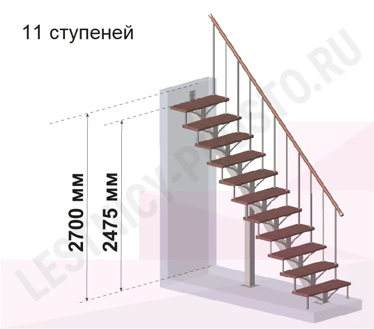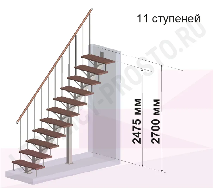 Лестница PROSTO MONO прямая, h270 см, ступени хвоя