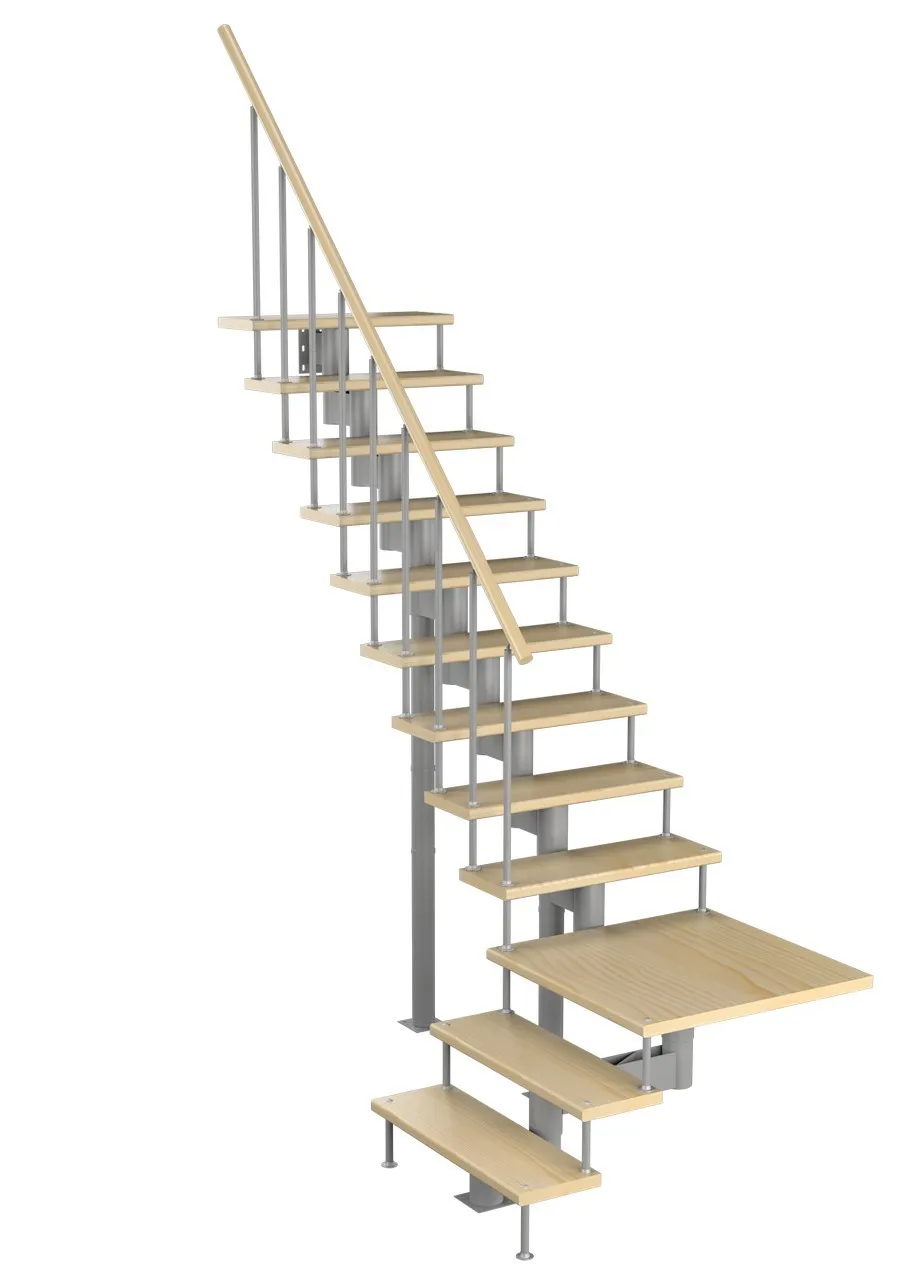 Каркас лестницы представляет собой набор модулей, которые комплектуются уже готовыми к монтажу.