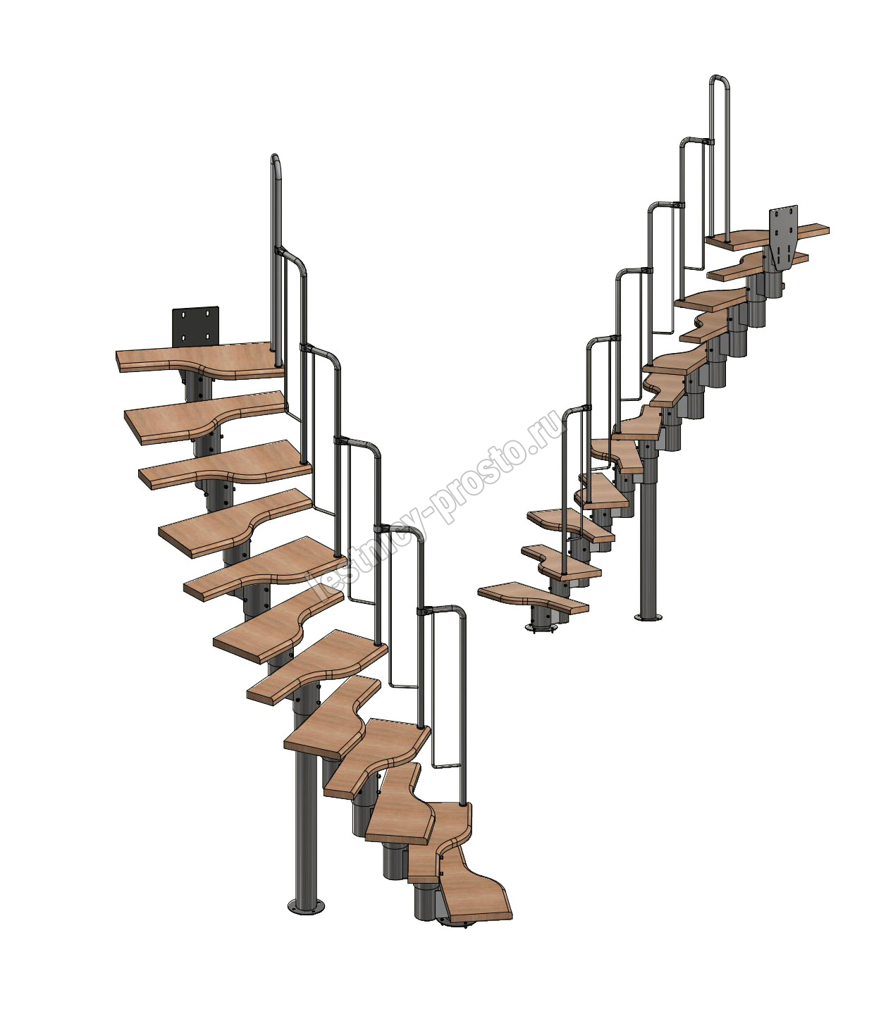Лестница Prosto Urban Black гусиный шаг 700 мм, h216-312 см (12 ступеней), ясень