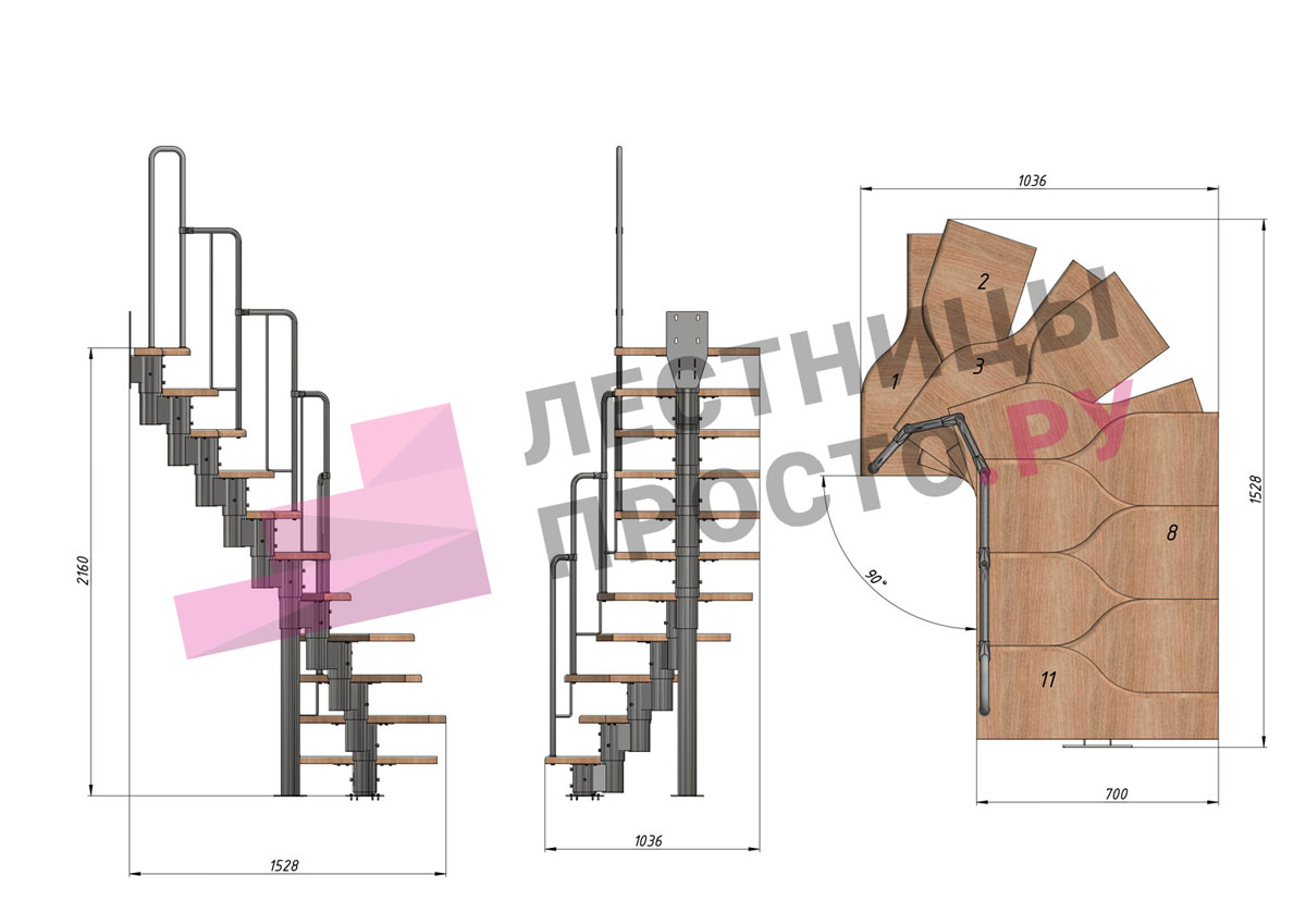 Лестница Prosto Urban Black гусиный шаг 700 мм/Ступени из берёзы мультиплекс