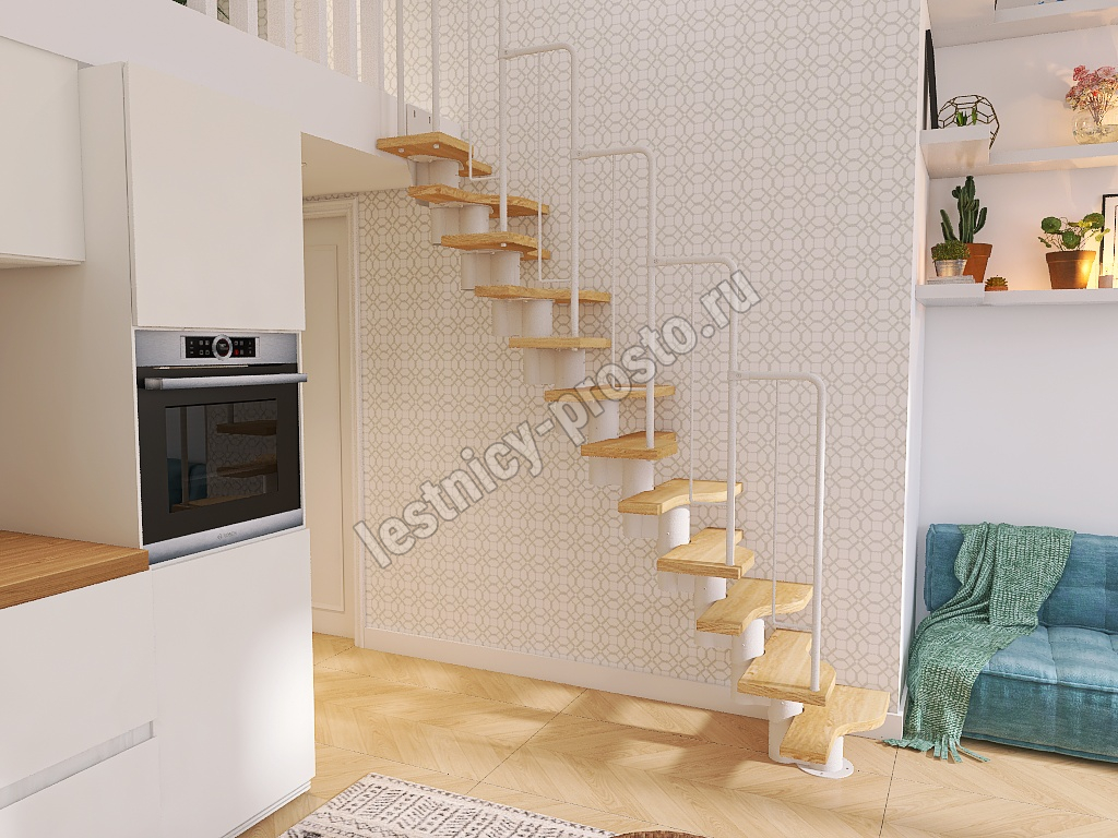 Лестница Prosto Urban White гусиный шаг 600 мм, h198-288 см (11 ступеней), берёза мультиплекс