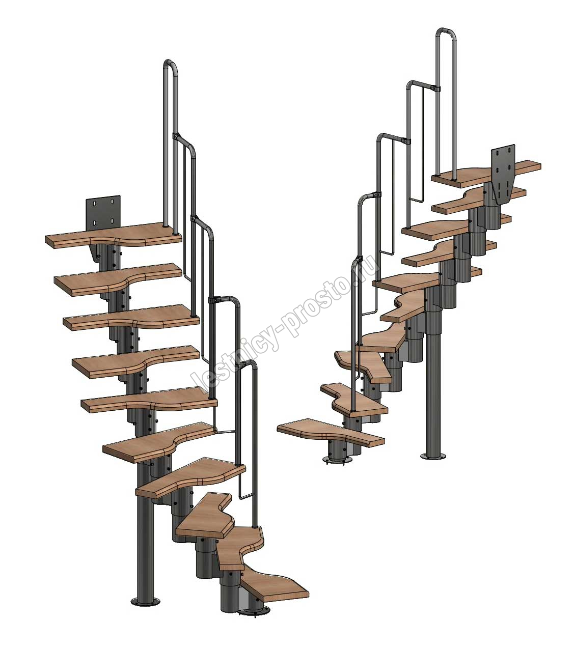 - Регулируемый по высоте в пределах 180-240 мм модуль. Большой диаметр и толщина металла деталей обеспечивают жесткость и прочность конструкции. Регулировка каждого модуля по высоте позволяет легко приспособить лестницу под ваше помещение.