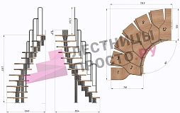 Высота лестницы 2160 - 3120 (12 ступеней) мм