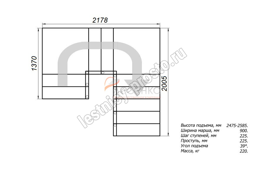 Модульная лестница Комфорт 225 2475-2585, Белый, Бук, Нержавеющая сталь