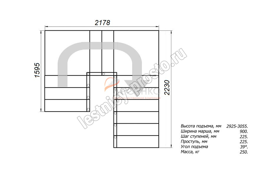 Модульная лестница Комфорт 225 2925-3055, Серый, Сосна, Нержавеющая сталь