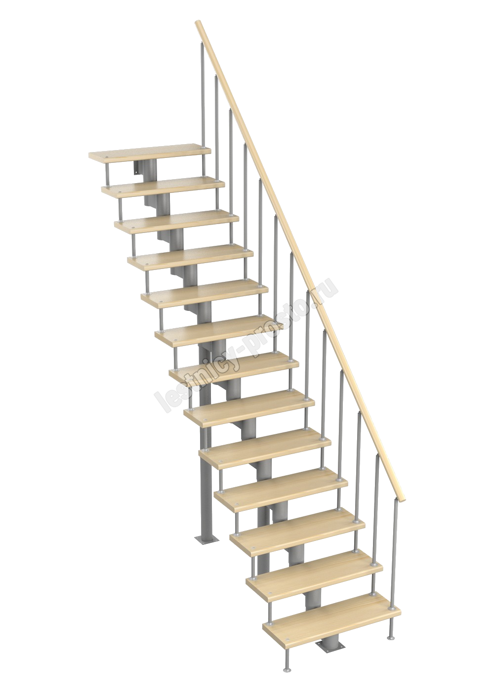 Модульная лестница Стандарт 2925-3055, Серый, Бук, Нержавеющая сталь
