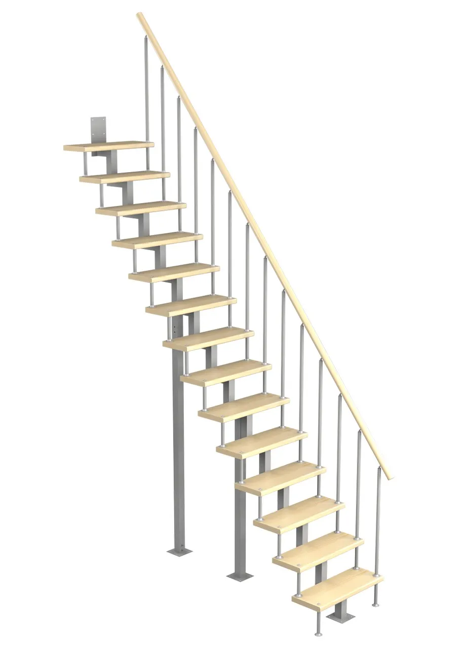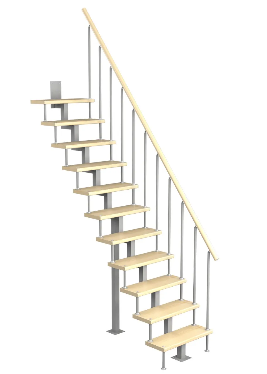 Модульная малогабаритная лестница Компакт 2925-3150, Серый, Бук, Нержавеющая сталь