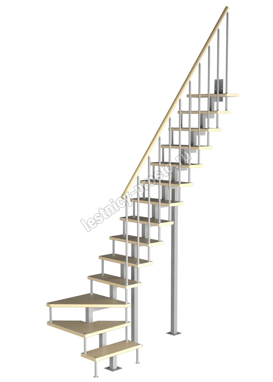 Модульная малогабаритная лестница Компакт 3150-3375, Серый, Сосна, Нержавеющая сталь