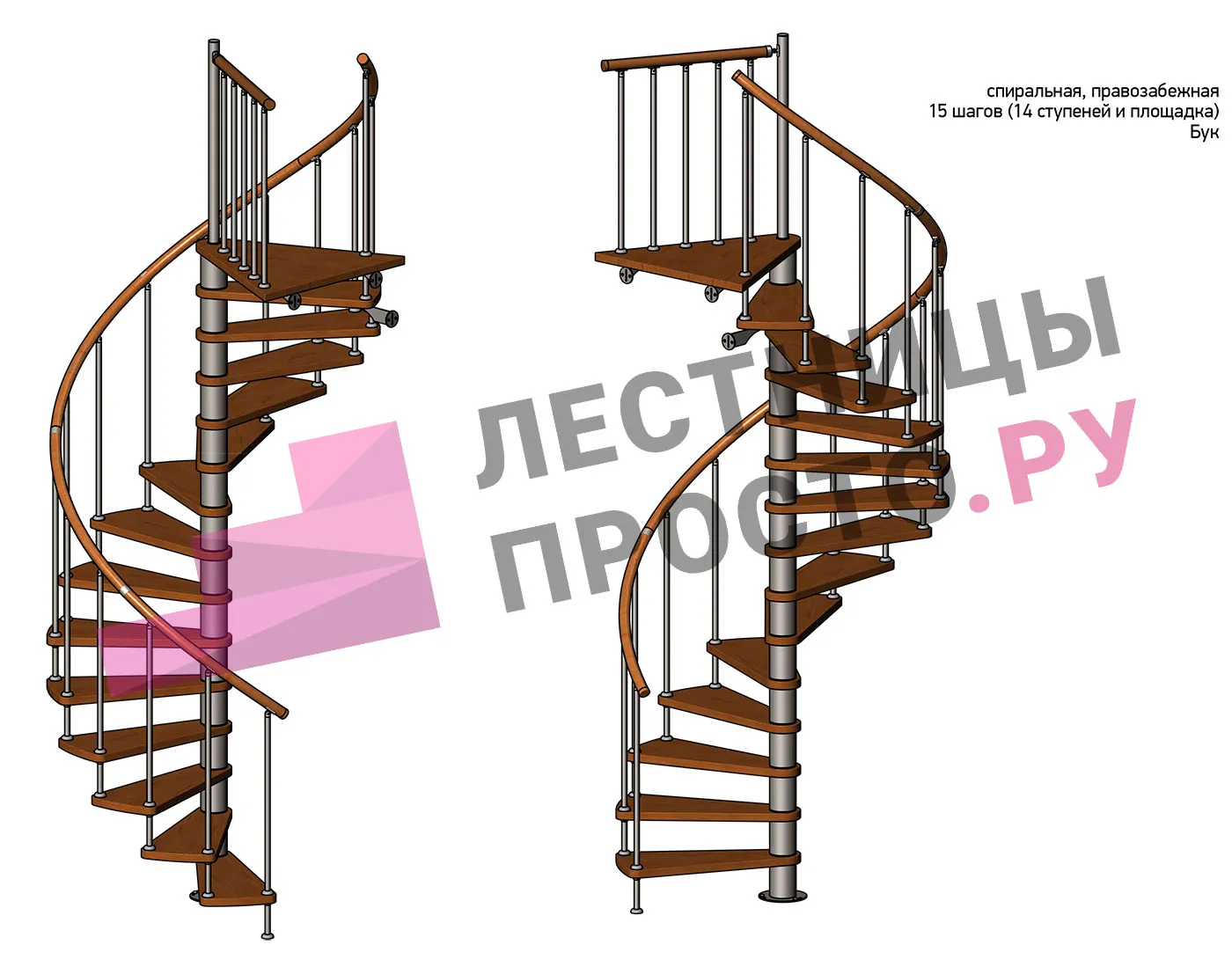 Винтовая лестница Prosto Spiral Black D160см, h325.7-369.8 см, бук