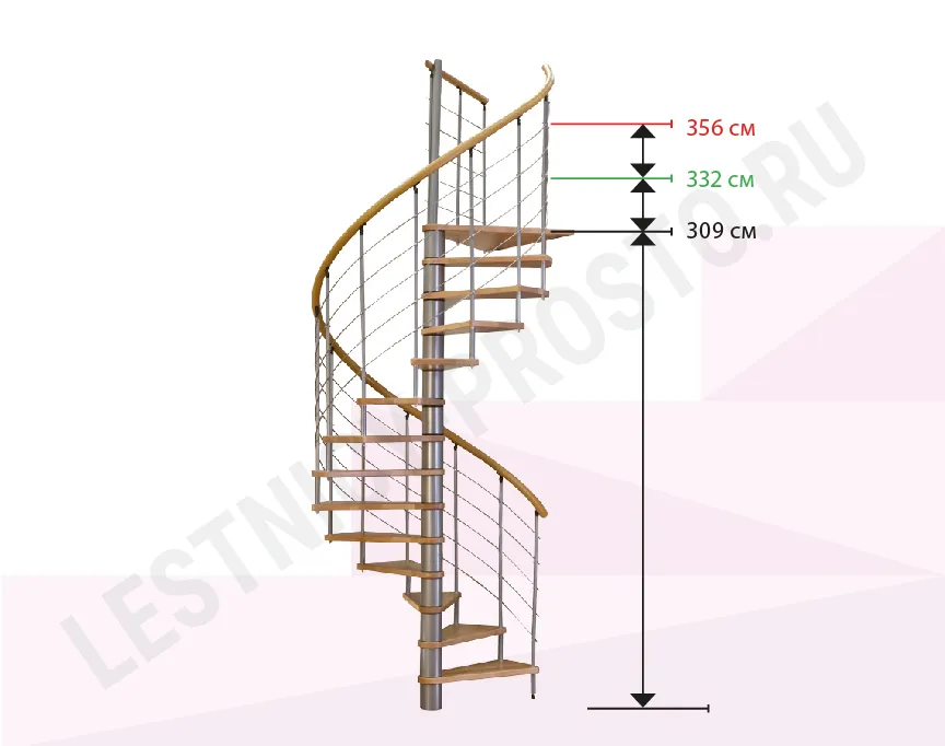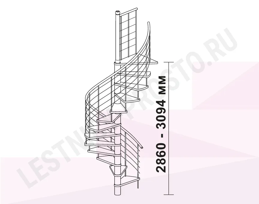Благодаря возможности регулировать высоту шага с помощью пластиковых вставок (входят в базовый комплект), высоту лестницы можно варьировать в пределах от 2860 до 3090 мм.