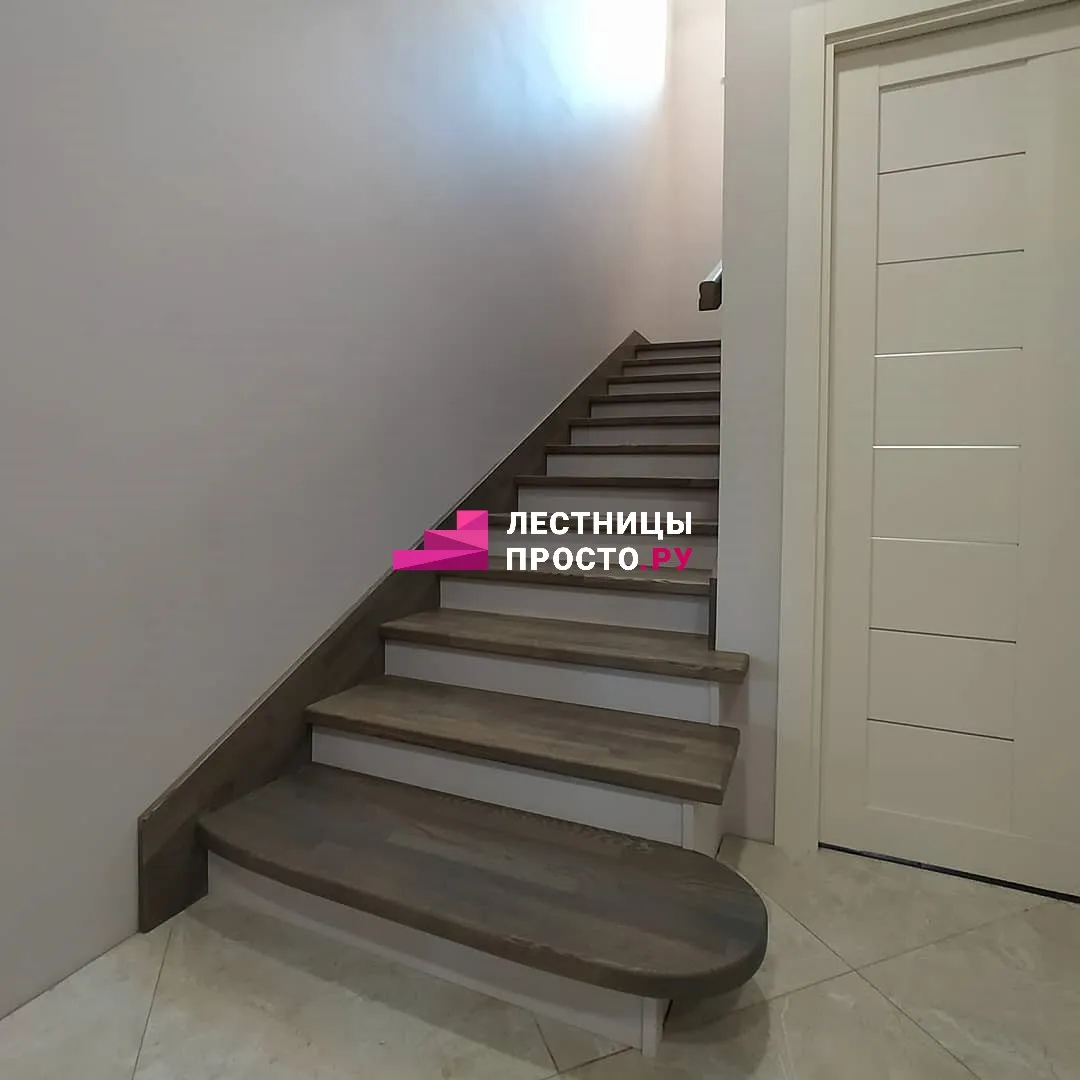 Отделка бетонной лестницы с площадкой в частном доме LP-1-16